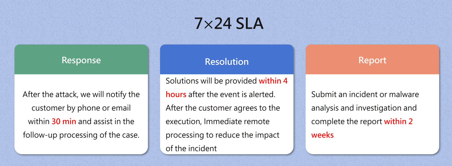 - 7×24 information security incident handling and technical consultation.